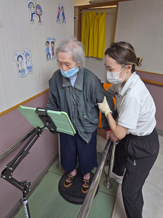Fuk Kwan Elderly Care Home has recently introduced a new gerontechnology-based balance training system. Residents practise weight shifting on a smart balance board through simple interactive games on a tablet, helping improve balance, attention and motivation. Each session is supervised by our physiotherapist to ensure safety and effectiveness. 🙂